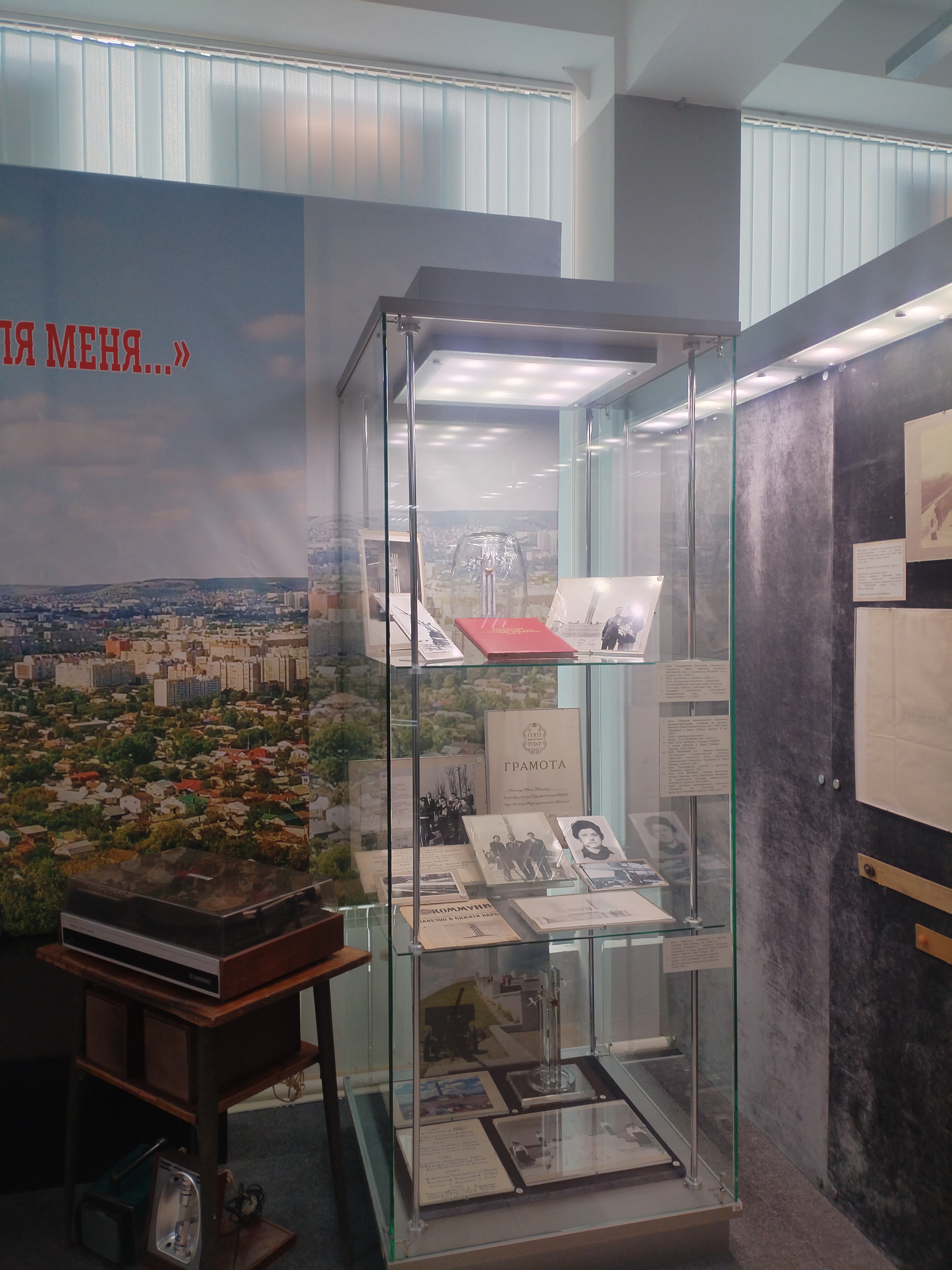 На выставке представлены предметы из фондов музея боевой и трудовой славы и личного архива семьи Менякиных, переданные Автономной некоммерческой информационно-культурной организацией «Журавли» имени архитектора Ю.И. Менякина. Семейные фотографии и документы рассказывают о фронтовой, профессиональной и личной судьбе Юрия Ивановича Менякина. Родился он 17 сентября 1925 года в станице Ремонтная Дубовского района Ростовской области. Мать – Вера Ильинична, потомственная донская казачка, отец – Иван Иванович, во время Гражданской войны служил в Первой конной армии. Сохранились письма Юрия, адресованные матери в дни Великой Отечественной войны. На фронтовых фотографиях Ю.И. Менякин – командир взвода разведки 250-го стрелкового полка 83-й гвардейской Городокской дивизии 11-й Гвардейской армии. В 1942 году в 17 лет он ушел на фронт добровольцем, под Сталинградом получил первое ранение, а закончил войну в г. Кёнигсберге. На выставке подлинная гимнастерка и многочисленные награды ветерана Ю.И. Менякина.