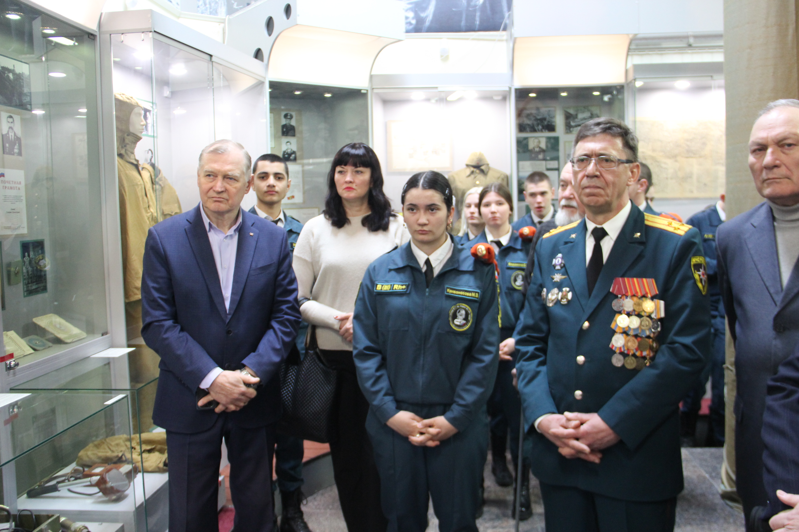 После открытие выставки состоялась торжественная церемония награждения памятными наградами ветеранов – ликвидаторов аварии. Они вспоминали свою опасную службу и наставляли молодое поколение спасателей на верную службу Родине.