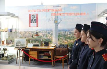 На выставке представлены предметы из фондов музея боевой и трудовой славы и личного архива семьи Менякиных, переданные Автономной некоммерческой информационно-культурной организацией «Журавли» имени архитектора Ю.И. Менякина. Семейные фотографии и документы рассказывают о фронтовой, профессиональной и личной судьбе Юрия Ивановича Менякина. Родился он 17 сентября 1925 года в станице Ремонтная Дубовского района Ростовской области. Мать – Вера Ильинична, потомственная донская казачка, отец – Иван Иванович, во время Гражданской войны служил в Первой конной армии. Сохранились письма Юрия, адресованные матери в дни Великой Отечественной войны. На фронтовых фотографиях Ю.И. Менякин – командир взвода разведки 250-го стрелкового полка 83-й гвардейской Городокской дивизии 11-й Гвардейской армии. В 1942 году в 17 лет он ушел на фронт добровольцем, под Сталинградом получил первое ранение, а закончил войну в г. Кёнигсберге. На выставке подлинная гимнастерка и многочисленные награды ветерана Ю.И. Менякина.