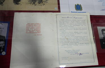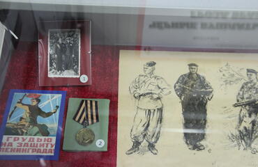 В годы Великой Отечественной войны морские пехотинцы доблестно сражались с немецко-фашистскими захватчиками, вызывая у них ужас и страх. Об этом свидетельствуют прозвища, которыми враг называл наших воинов – «чёрные дьяволы» и «чёрная смерть». На выставке – фотографии, почётные грамоты и документы Денисенко Василия Кондратьевича, офицера 4-й бригады морской пехоты, участника обороны Ленинграда и боёв за взятие Кёнигсберга.