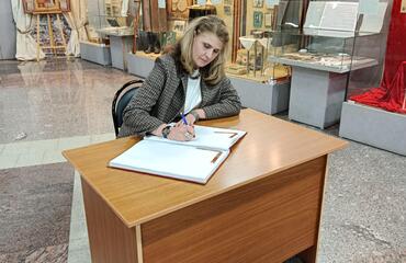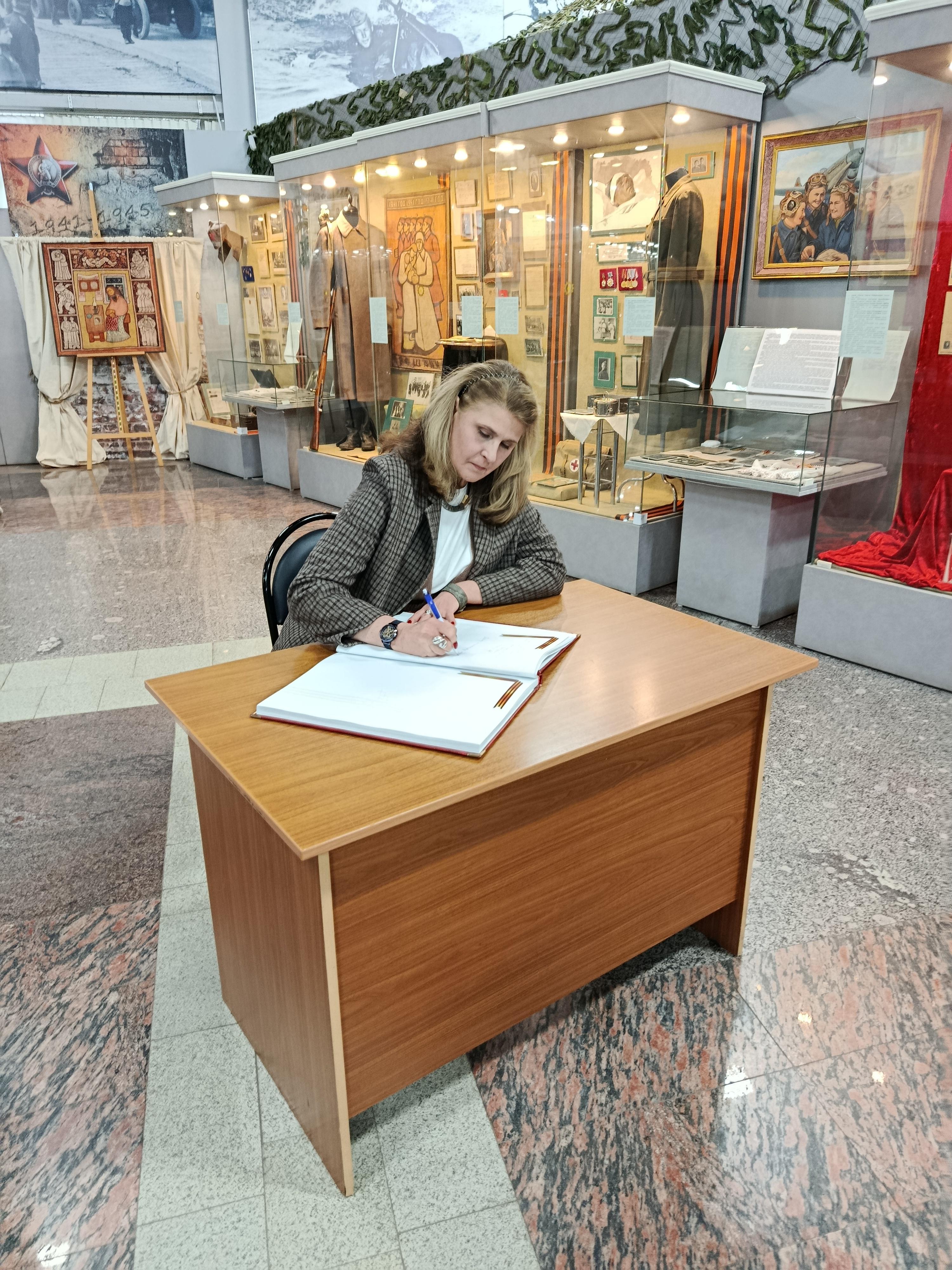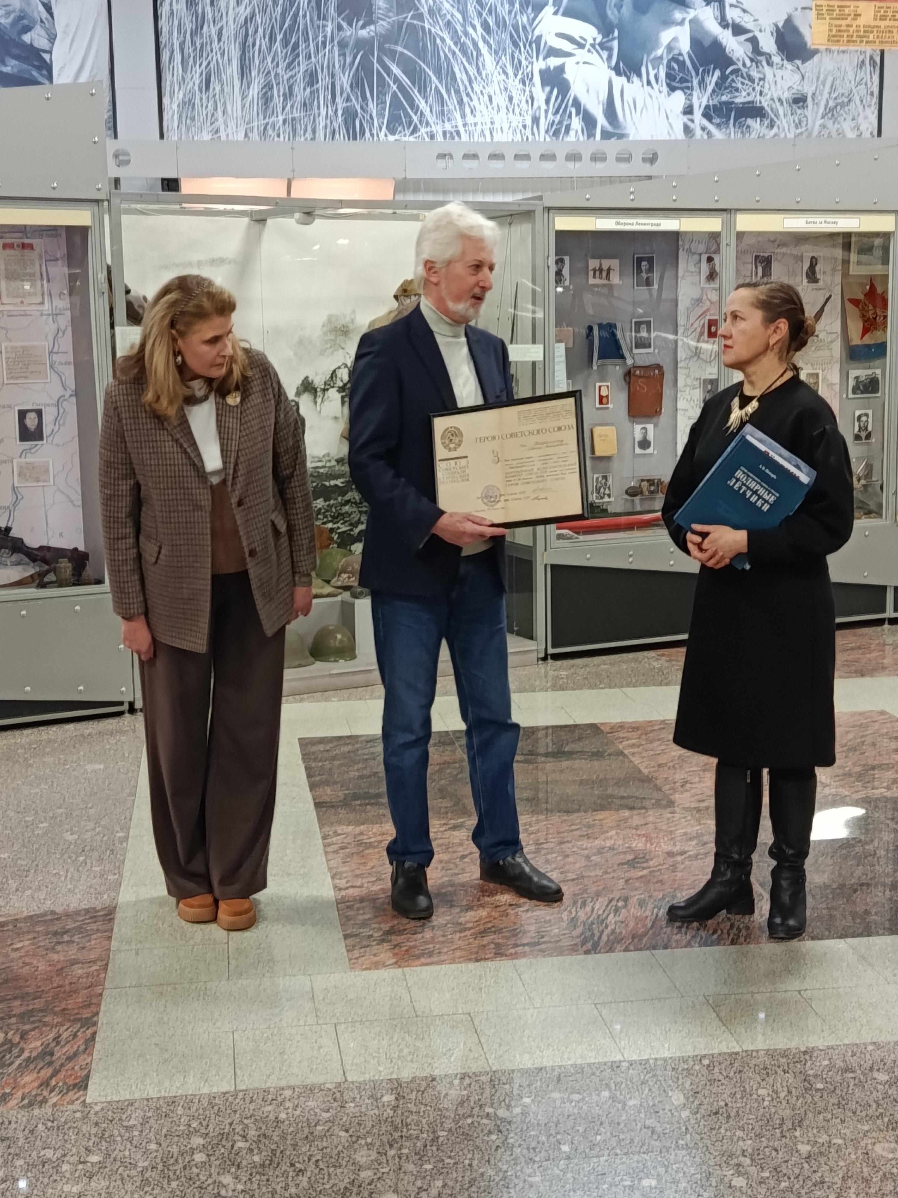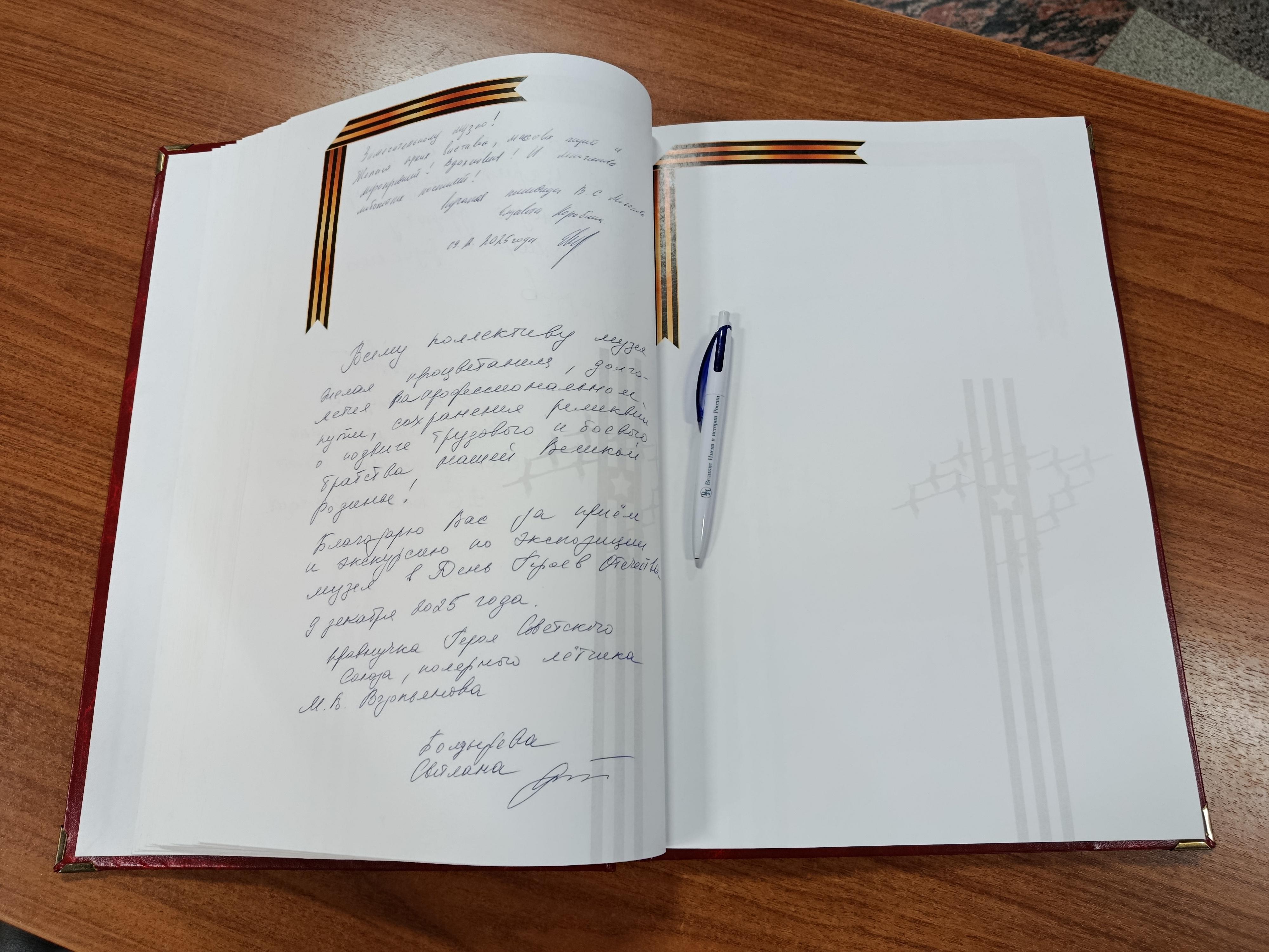 Сегодня в этот памятный день наш музей посетили члены общественного комитета «Челюскинцы», среди которых были правнучка Героя Советского Союза Михаила Васильевича Водопьянова Светлана Михайловна Болдырева и внучатая племянница Героя Советского Союза Василия Сергеевича Молокова Елизавета Кирилловна Коробкина. Они передали музею памятные подарки и сделали запись в Книге почетных гостей.