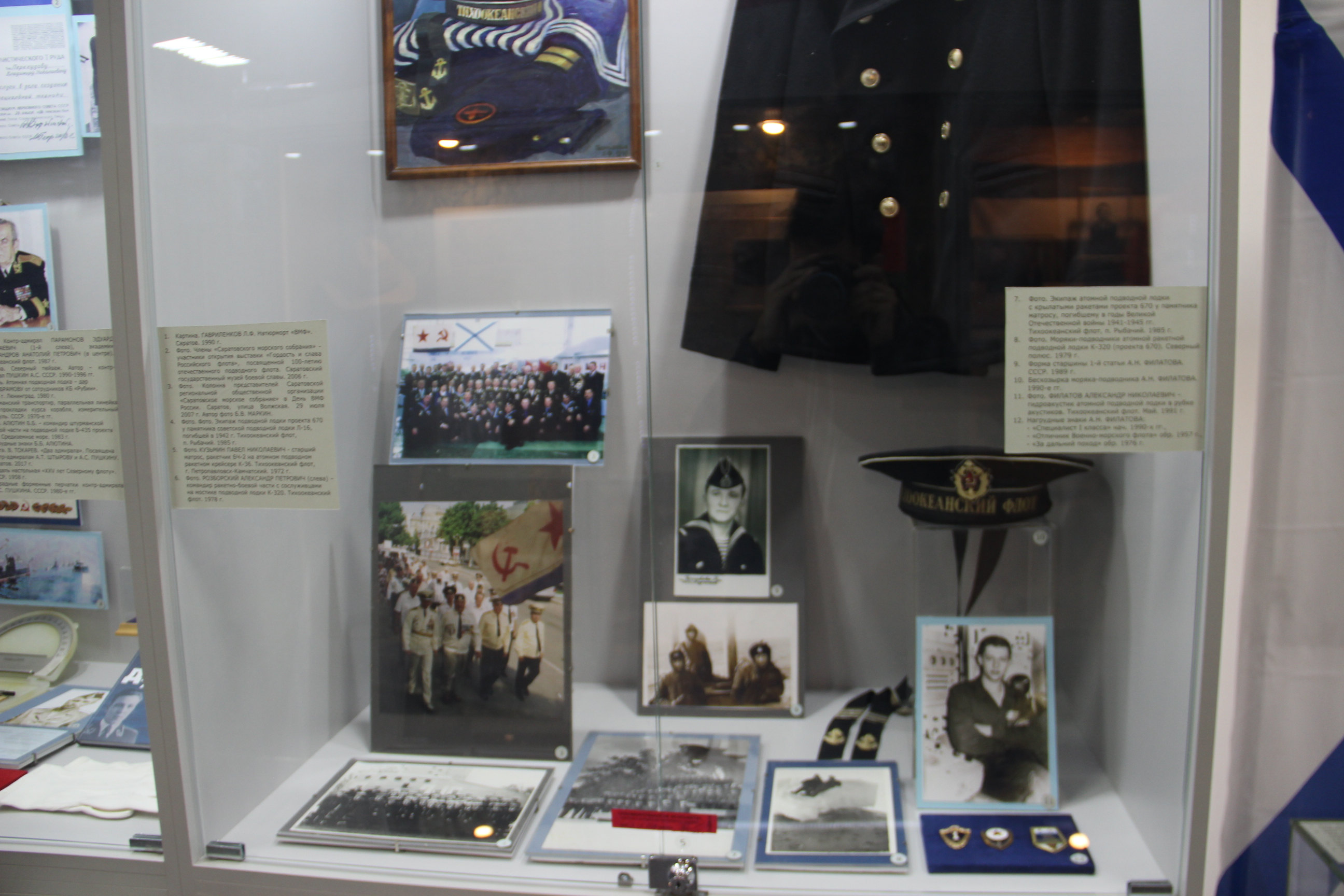 Отдельный раздел посвящен контр-адмиралам ВМФ СССР, оставившим выдающийся след в истории подводного флота: Александру Сергеевичу Пушкину, Анатолию Тихоновичу Штырову, Эдуарду Николаевичу Парамонову. На выставке среди фотографий и документов, нагрудный знак «Командир подводного корабля» и парадные перчатки контр-адмирала А.С. Пушкина.